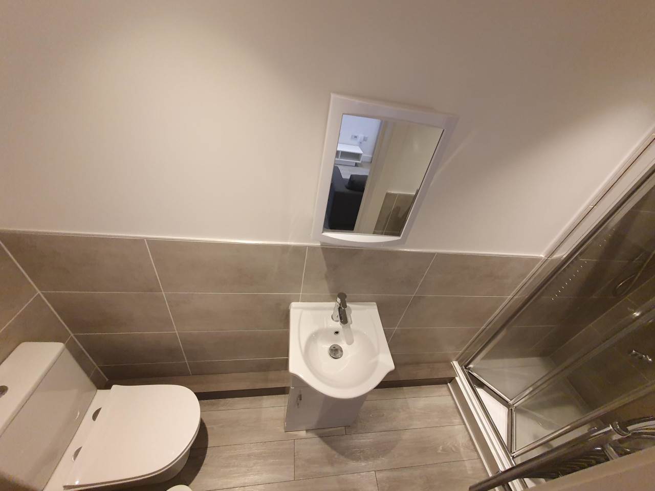 ***SELF CONTAINED ONE BED FLAT - STUDENT***Internet INCLUDED Super sleek & modern in design with all new furniture. Kitchen with a washer dryer, integrated electric fan oven, ceramic hob, chimney style extractor hood, fridge freezer, flush wall and base units with chrome sink & drainer. Dining table & two chairs and comfortable two seat sofa, tv stand etc. Bedroom furnished with double bed, chest of drawers, bed side table, built in wardrobe, desk and study chair. Shower room with white suite including a large shower cubicle and bathroom cabinet. Off road parking.